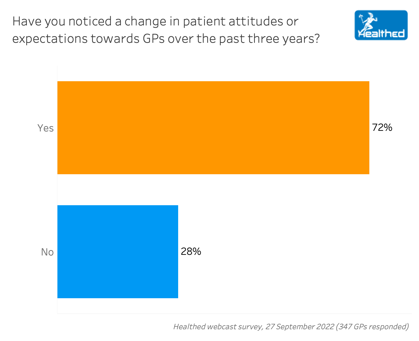 Two thirds of GPs surveyed (67%) said that patient expectations had changed due to pandemic pressures but also due to the rise of instant gratification consumer culture.