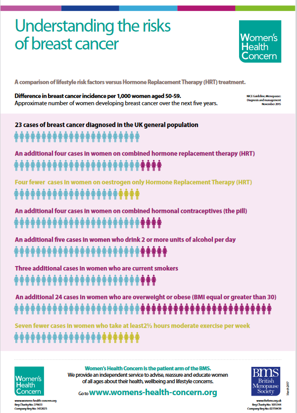 Baber said large observational studies [1] have shown that women using body-identical hormones had no increased risk of breast cancer for the duration of the studies (five to eight years). An increased risk was seen for women using estrogens in combination with synthetic progestogens. Furthermore, long term follow up of the WHI trials found that, for women using estrogen only compared to placebo, there was a reduced risk of getting breast cancer and also of death due to breast cancer. Women who used estrogen plus a synthetic progestogen compared to placebo did have an increased risk of getting breast cancer (equivalent to 0.8 cases per 1000 women per year) but NOT of death due to breast cancer. Additionally, a Cochrane Systematic review of MHT use in women within 10 years of their last period reported a reduced risk of CHD and all-cause mortality.