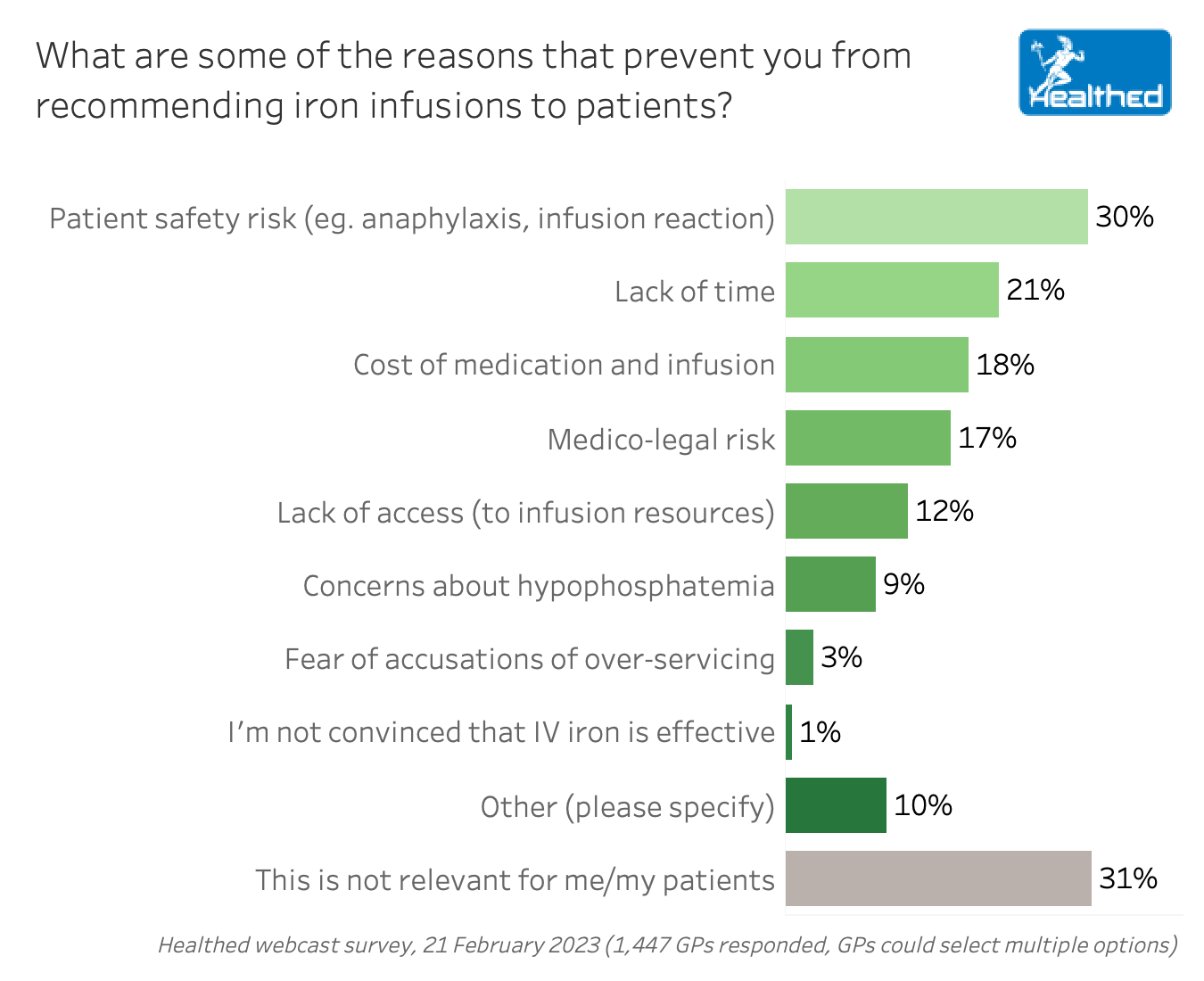 But 30% of surveyed GPs said concerns about patient safety prevented them from recommending iron infusions.